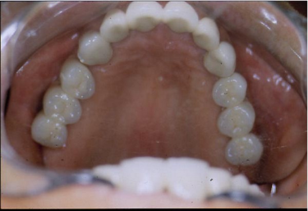 30/04/13 - 12:40 pm Dr. Me gusto mucho el caso que presenta , ya que como vimos es un tema poco abordado en cursos y congresos. Estoy de acuerdo con usted en cuanto a que el paciente debe controlarse periódicamente . Me gustaría de ser posible que explique como rehalizan ustedes el montage en articulador a partir de casquetes metálicos . Nosotros en la argentina en nuestra facultad estamos proyectando un dispositivo de apoyo central único de fácil utilización similar al que se utiliza en prótesis totales , pero para pacientes dentados que perdieron su dimensión vertical , y me seria seguramente de ayuda sus comentarios desde ya muchas gracias.