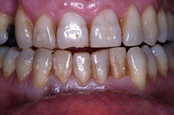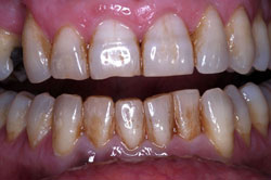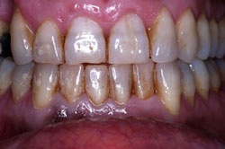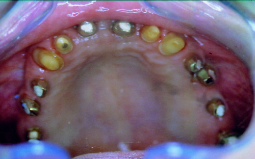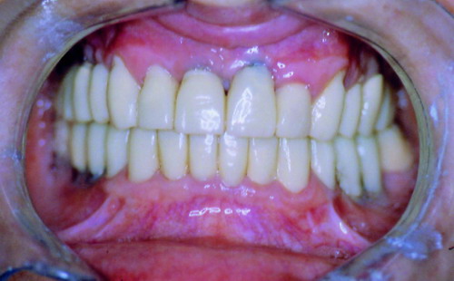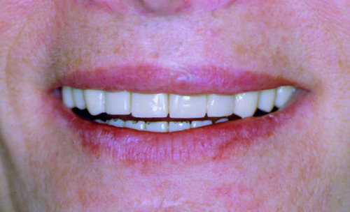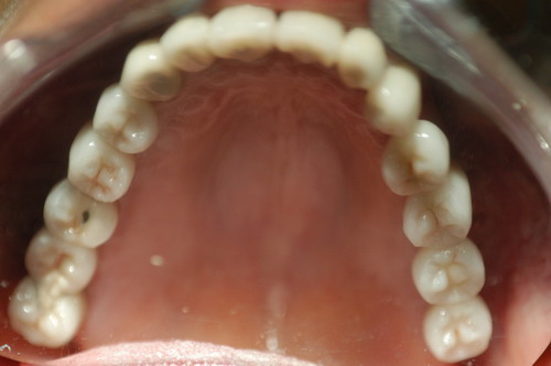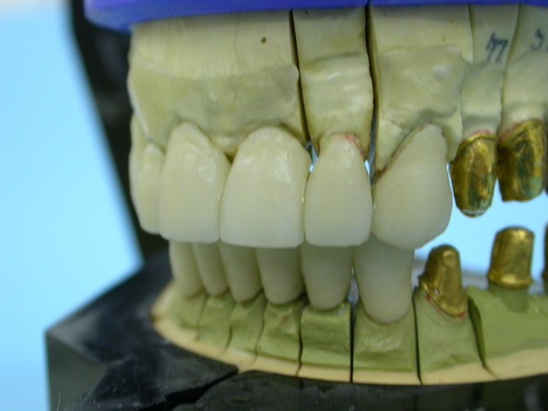 17/02/09 - 7:12 pm Crítica constructiva: En este caso veo varios errores, en primer lugar los márgenes gingivales de los incisivos centrales están a distinta altura, quizá con ROG+injertos libres se podría haber solucionado. En segundo lugar, se ve un halo grisáceo en 2.1 (Inc Central Izq), la paciente tiene un biotipo periodontal fino, yo hubiera apostado por pilares cerámicos de óxido de alúmina o de circonio, y el hombro cerámico yuxtagingival.