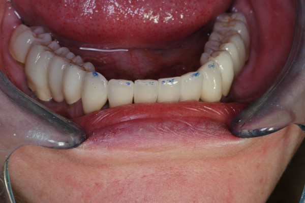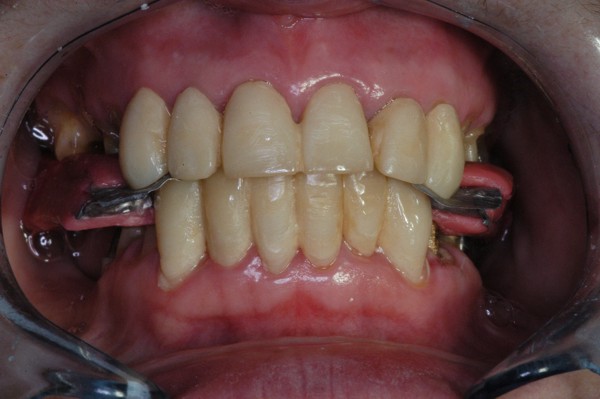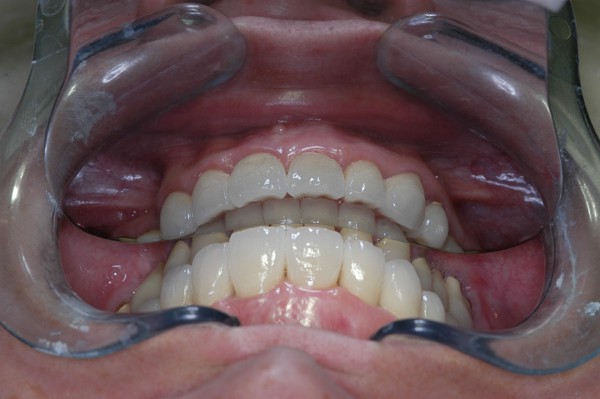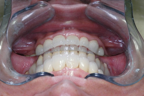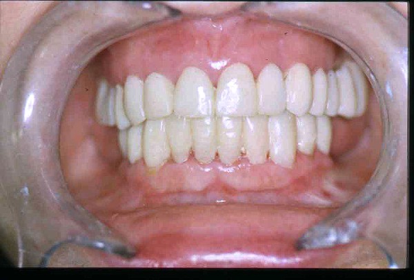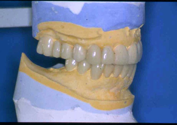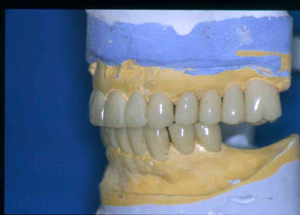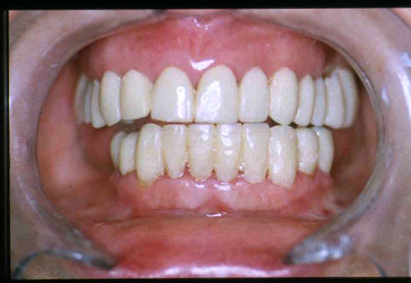 | ![]() Saber escuchar al enfermo.Este artículo pertenece a la categoría: Casos Clínicos Dr. Carlos Acuña Priano APRECIACIONES DIAGNÓSTICAS EN BASE A LA APERTURA MENTAL DEL CLÍNICO FRENTE A LO QUE EL PACIENTE PROPONE EN MUCHAS OCASIONES , LA DEMANDA DE LOS PACIENTES NOS INCLINAN A FOCALIZAR NUESTRA ATENCIÓN EN LAS PIEZAS DE LAS CUALES EL ENFERMO SE QUEJA. PACIENTE SEXO FEMENINO, 55 AÑOS, SE PRESENTA A LA CONSULTA DERIVADA POR COMPAÑERO GENERALISTA, QUIEN LLEVA MESES PROCEDIENDO A LA «DESINFECCIÓN» DE UN PRIMER PREMOLAR IZQUIERDO, EL QUE SE PRESENTA ABIERTO EN SU CONDUCTO EN EL AFÁN DE PERMITIR EL ESCAPE DE GASES DE UNA GANGRENA PULPAR. A LA INSPECCIÓN CLÍNICA SE OBSERVAN FACETAS PARAFUNCIONALES DE TERCER GRADO , ASINTOMÁTICAS, CON EVIDENTES DIFICULTADES MASTICATORIAS Y ESTÉTICAS , FALTA TOTAL DE SUS MOLARES INFERIORES, Y ADELANTAMIENTO PRONUNCIADO DE SU MANDIBULA, LA QUE CUESTA MANIPULAR DEBIDO A LA SITUACIÓN DE ESPASMO DE CASI TODA SU MUSCULATURA GNATICA. SE ESTUDIA EL CASO RADIOLOGICAMENTE, Y SE RELAJA EL SISTEMA MEDIANTE LAM. DE LONG REALIZANDO UN MONTAJE EN LA ORC OBTENIDA. NO SATISFECHOS CON EL RESULTADO, CONFECCIONAMOS UN JIG DE LUCIA, EL QUE DEJAMOS EN BOCA TODA UNA NOCHE, AL CABO DE LA CUAL REALIZAMOS UN NUEVO REGISTRO REALIZAMOS UN ENCERADO RÁPIDO DEL CASO, Y CONFECCIONAMOS UNA ESTRUCTURA OCLUSAL PLASTICA, QUE ADEMÁS REPONGA EL ASPECTO ESTÉTICO PERDIDO (FÉRULA DE RELAJACIÓN DE COMPONENTE ESTÉTICO), LO QUE PERMITE AL ENFERMO LUEGO DE DOS DÍAS DE USO, NO SOLO CORROBORAR LA COMODIDAD MASTICATORIA Y LA FALTA DE SÍNTOMAS MUSCULARES, SINO TAMBIÉN OBSERVAR APROXIMADAMENTE LA DIFERENCIA ENTRE LA SITUACIÓN INICIAL Y LO QUE PUEDE LOGRARSE MEDIANTE EL TRATAMIENTO. EL PACIENTE ADVIERTE LA MEJORÍA DE LA SITUACIÓN. ACEPTADO POR PARTE DEL MISMO EL TRATAMIENTO SUGERIDO, CREAMOS UN JUEGO COMPLETO DE PROVISORIOS EN BASE AL ENCERADO, Y PROCEDEMOS A TRATAR LA INFRAESTRUCTURA, QUE CONSISTE EN LAS ENDODONCIAS, SUS REFUERZOS A PERNOS DE ORO, LOS ASPECTOS PERIODONTALES DEL CASO, Y DOS IMPLANTES INFERIORES CON TÉCNICA SEMISUMERGIDA ,DE 5 MM DE ANCHO POR 12 DE LONGITUD, CON ANILLO DE ZIRCONIO , A LA ESPERA DE OSTEOINTEGRACIÓN, TRANSCURREN TRES MESES EN EL USO DE UNA NUEVA OCLUSIÓN CONSTITUIDA POR LOS PROVISIONALES, SEGÚN EL ENCERADO, QUE SE REALIZÓ SIGUIENDO LOS CÁNONES DE UNA OCLUSIÓN ORGÁNICA. COMPROBADA LA EFICACIA DE LA NUEVA SITUACIÓN, CON SUS DISCLUSIONES LATERALES Y POSTERO ANTERIORES CORRECTAS, CARECIENDO YA DE SINTOMATOLOGÍA MUSCULAR (SIN MIALGIAS, SIN MIOSITIS, Y CON UN GRADO DE APERTURA DE 4,50 CM), Y SIN SIGNOS EVIDENTES DE DESGASTE SOBRE EL MATERIAL DE LOS PROVISORIOS, ES DECIR: VERIFICANDO QUE EL PACIENTE YA NO BRUXA, VERTICALIZANDO EL CICLO MASTICATORIO /OTORGANDO ORC/ DIMENSIÓN VERTICAL /PROTEGIENDO A LAS PIEZAS `POSTERIORES DE IMPACTOS LATERALES RECIEN ENTONCES , MONTAMOS EN ARTICULADOR SEMI AJUSTABLE LOS MODELOS DE TRABAJO DEFINITIVOS. CONFECCIONAMOS ENTONCES LAS COFIAS INFRA PORCELANA, EN PORCELANA DE ALTA DENSIDAD EN EL SECTOR ANTERIOR Y EN ORO GALVÁNICO PARA EL SECTOR POSTERIOR PARA LUEGO COMPLETAR LA GUIA ANTERIOR , VERIFICANDO LA ALTURA DE LOS INFERIORES RESPECTO DEL LABIO INFERIOR Y CORROBORANDO LOS PUNTOS DE CONTACTOS INTER CANINOS, QUE CENTRALIZAN LA MANDIBULA Y VERTICALIZAN EL CICLO MASTICATORIO Y LAS DISCLUSIONES CANINAS QUE OTORGARÁN PROTECCIÓN A LOS SECTORES POSTERIORES. POSTERIORMENTE CHEQUEAMOS LA DISCLUSIÓN EN PROPULSIVA DE LA GUIA ANTERIOR YA TERMINADA. FIG38 FIG39 UNA VEZ OBTENIDO UN COMANDO ANTERIOR EFECTIVO, COMO LO ES LA GUIA ANTERIOR CON TODOS SUS COMPONENTES, PROCEDEMOS A REALIZAR LAS TABLAS PREMOLAR / MOLAR DE AMBOS LADOS Y OBSERVAMOS QUE LOS PUNTOS INTEROCLUSALES DE CONTACTO SEAN SUFICIENTES Y CUMPLAN SU OBJETIVO DE OTORGAR ESTABILIDAD MESIO DISTAL Y VESTÍBULO LINGUAL. TRANSCURRIDO UN AÑO DE FINALIZADO EL TRATAMIENTO, REALIZAMOS UN CHEQUEO POST OPERATORIO DEL CASO, EN TODOS LOS PARÁMETROS ANTERIORMENTE MENCIONADOS, Y OBSERVAMOS LA ABSOLUTA ESTABILIDAD DEL MISMO EN TODOS SUS NIVELES Y TEJIDOS.