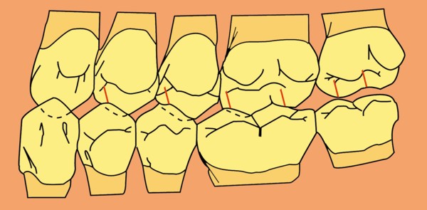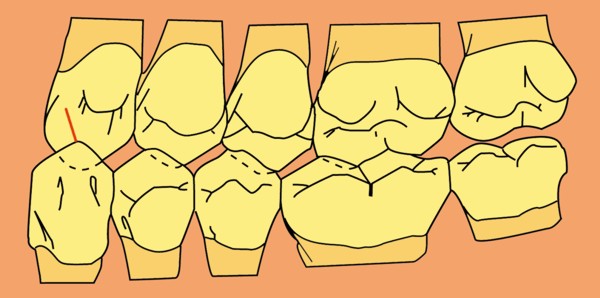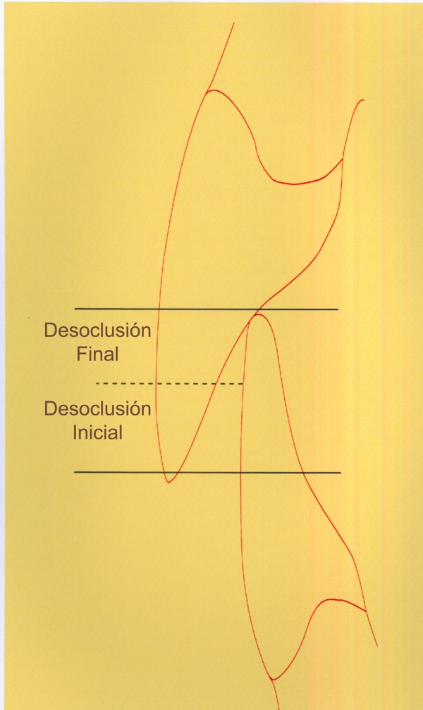 28/03/11 - 1:23 pm Estimado Julián: Es Ud.muy observador y me alegra tratar con colegas así: La obtención de espacios uniformes no hacen a la disclusíon. Se puede discluir con espacio No uniformes. Pero quesucede: cuando un habla de DESOCLUSIÓN, (importantísimo), en realidad está hablando del fenómeno inverso al que se produce durante el ciclo masticatorio.OK? Porque lo estudiamos asi (desde la céntrica hacia la excéntrica):PORQUE ES MAS FACIL! En realidad, el ciclo masticatoria consiste en: ABRIR..LATERALIZAR…CERRAR A PUNTA CON PUNTA DE CANINO…Y…DESDE ESE PRIMER CONTACTO…GUIADO EL INFERIOR( Y LA MANDÍBULA TODA) HACIA LA CÉNTRICA…LOGRAR QUE TODOS LOS PUNTOS INTEROCLUSALES POSTERIORES CONTACTEN AL MISMO TIEMPO..OK? Ahora bien: SI ESE CONTACTO SIMULTÁNEO, SE PRODUCE POR EJEMPLO: CON UN RECORRIDO MENOR POR UNAS PIEZAS QUE POR OTRAS…SERÁ PORQUE EL ESPACIO ENTRE ELLAS ES DIFERENTE.. SI LOGRAMOS QUE LOS ESPACIOS SEAN UNIFORMES, EL ALIMENTO CABRÁ ENTRE LAS SUPERFICIES MOLARES Y PREMOLARES EN LA MISMA CANTIDAD…Y POR LO TANTO: LA EFICACIA MASTICATORIA(QUE DE ESO SE TRATA) SERA MAYOR…QUE SI POR EJEMPLO ENTRE LOS PREMOLARES ENTRA UN TROZO DE 5MM2…Y ENTRE LOS MOLARES SOLO UNO DE 1 MM2…. ES COMO SI UNO CORTA UN TABLERO DE MADERA, CON EL SERRUCHO INCLINADO A 45º…A DIFERENCIA DE SI A CORTA CON EL SERRUCHO PERPENDICULAR AL EJE HORIZONTAL DE LA MADERA…..EN ESTE ULTIMO CASO TODO EL ESPESOR DE LA MADERA ES CORTADO… ¿SE ENTIENDE? ATENTAMENTE. DR.ACUÑA PRIANO julian