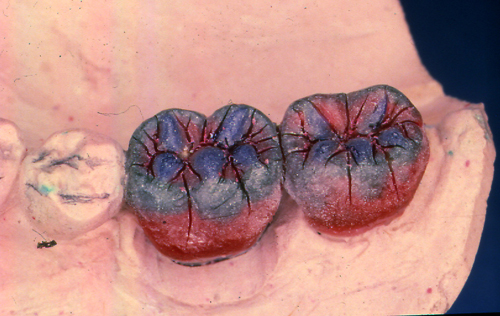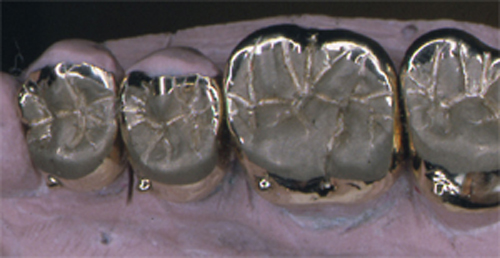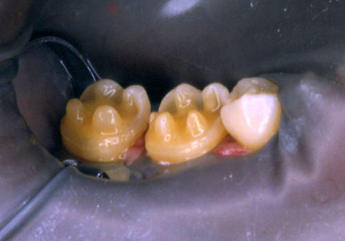| ![]() Las facetas parafuncionales. Su implicancia diagnostica como elementos de alto potencial patologico.Este artículo pertenece a la categoría: Casos Clínicos Dr. Carlos Acuña Priano INTRODUCCION La rehabilitación oral como especialidad multidisciplinaria, obliga al profesional a pensar en términos complejos, donde la observación de todos y cada uno de los elementos constituyentes del sistema Estomatognático se hace imprescindible para el arribo a un diagnóstico de certeza. Sabido es que el esmalte dentario se desgasta con el correr de los años. Sin embargo, es importante determinar como se produce dicho desgaste y si éste responde a una cuestión de carácter fisiológico o se trata de una manifestación patológica. Adaptativas Tienen paca velocidad de desgaste. Su localización es exclusivamente de esmalte. No hay deformación oclusal y se producen cuando el sistema neuromuscular es aún inmaduro. Madurativas En la oclusión adulta los contactos interoclusales son puntiformes, ya que contactan convexidades contra convexidades. Parafuncionales Son las únicas que podemos considerar patológicas. Su velocidad de desgaste es mucho mayor y se localizan en dentina, pudiendo o no ser sintomáticas. En los anteriores el desgaste puede ser plano y parejo, lo que significa que el paciente bruxa en sentido anteroposterior. Si por el contrario, el desgaste es curvo, el bruxismo es de carácter latero-lateral. En los posteriores podemos observar en casos avanzados que las cúspides estampadoras presentan una facetamiento mayor que las cúspides de corte, ya que en las lateralidades aquéllos que rozan el doble de veces que éstas últimas, dando lugar al llamado desgaste “en olla” e invirtiendo la curva de Wilson. MATERIAL Y MÉTODOS En el desarrollo de este trabajo se utilizaron onlays de oro (Ventura 120). CASO CLÍNICO El paciente se presenta a la consulta derivado y con severas mialgias difusas y referidas fundamentalmente a la cara, región posterior del cuello y ocasionalmente en la región occipital y temporal. Mujer 55 años, prácticamente sin historia odontológica anterior, ya que dice tener una dentadura excelente y que sólo visita a su dentista con relativa periodicidad para limpiezas, ya que caries cree no tener. Se evidencian signos depresivos cuando manifiesta que no sabe como dar solución a su problema. El examen periodontal denota bolsas poco profundas salvo en el incisivo superior lateral izquierdo, que también ofrece una moderada movilidad y ligeramente vestibulizado. El examen de la ATM determina la presencia de ruidos articulares en apertura y cierre y dolor a la palpación. Durante este examen manifiesta haber tenido dificultades para la apertura en reiteradas ocasiones. Fig 1/2 Se toman modelos de estudio y se duplican. Antes de proceder a su correspondiente montaje en un articulador semiajustable, se observan individualmente cada uno de3 ellos haciéndose ya objetiva la presencia de facetas de desgaste que, sin duda, tienen un origen y que nos darán la clave de nuestro diagnóstico (Fig. 3). Montados ya los modelos en oclusión en relación céntrica, mediante el que considero el más fisiológico medio de obtención de la misma: las laminillas de Long, preconizado por el Dr. W.H. McHorris (*), y que nos permite romper con los engramas o patrones de memoria muscular que trae el paciente y que en muchos casos, como éste, llevan a la mandíbula fuera de su posición esqueletal fisiológica, y que la obliga a trabajar en medio de contracturas musculares fundamentalmente del pterigoideo Externo. Cabe en este punto recalcar que es la ORC la única posición diagnóstica posible, la que, además de permitirnos obtener el eje de bisagra Terminal, es la única posición repetible. Al mirar los modelos montados según estos conceptos, podemos ver un punto prematuro de contacto (contacto único) (Fig. 4) Llevamos entonces la rama inferior de nuestro articulador hacia la posición a que dicho punto la guía, alcanzando la oclusión habitual (OH) en la que el paciente desarrolla su masticación. Podemos ver entonces la migración que dicho maxilar realiza hacia delante y a la izquierda, produciéndose una discrepancia horizontal. Dicha discrepancia obliga a la permanente contractura del pterigoideo externo del lado opuesto y el consecuente encadenamiento de pequeñas contracturas entre los músculos protagonistas, antagonistas y agonistas que rigen el movimiento. Procedemos a realizar el ajuste oclusal en el articulador mediante sustracción y adición, anotando prolijamente la secuencia del mismo, obteniendo así un único arco de cierre: ARCO DE CIERRE TERMINAL DE BISAGRA; y logrando mediante composites en las desgastadas puntas caninas, una disclusión canina (oclusión mutuamente protegida). Transferimos nuestro primer desgaste a la boca e instalamos la placa. Una semana después de uso nocturno pedimos al paciente que regrese, permaneciendo la placa en posición desde unas horas antes de la consulta, y observamos la enorme destalación que experimenta la mandíbula. Hacemos entonces un nuevo ajuste de la oclusión en boca. Adicionamos más composite a los caninos, tal como antes lo habíamos hecho con cera en el articulador. En este punto del proceso, vinculando ya la sintomatología con la discrepancia, evaluamos si la estabilidad oclusal será permanente o no. Al observar que los contactos son de superficie contra superficie, donde las fuerzas de deslizamiento se transforman en fuerzas de rozamiento (factor de alto potencial patológico) decidimos reestructurar la morfología oclusal para finalmente obtener los cuatro pilares fundamentales de la oclusión orgánica: AXIALIDAD, ESTABILIDAD, NO INTERFERENCIA, Y ALINEACIÓN TRIDIMENSIONAL. Considerando la edad de la paciente, sus escasas exigencias estéticas y el valor otorgado por la misma a la recuperación ad integrum de sus funciones, optamos por el oro como material óptimo de elección. Procedemos e