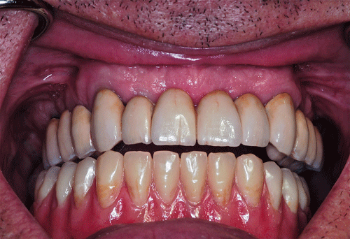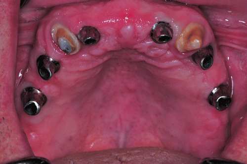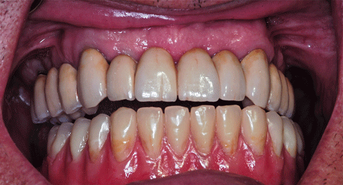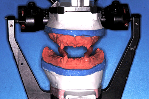 | ![]() Rehabilitación Oclusal Implanto Asistida: La Integralidad llevada a la prácticaEste artículo pertenece a la categoría: Casos Clínicos Dr. Carlos Acuña Priano PALABRAS CLAVE: INTRODUCCIÓN “OCLUSIÓN, ES LA SUMATORIA DE VÍNCULOS QUE LOS DIFERENTES COMPONENTES DEL SISTEMA ESTABLECEN ENTRE SÍ, DINAMICAMENTE CONCEBIDOS, Y CUYA ACCIÓN CONJUNTA SE SINTETIZA EN LA CONVERGENCIA SOBRE LAS ARCADAS DENTARIAS” Este trabajo, intenta mostrar todos los procedimientos necesarios para “rehabilitar mediante implantes y prótesis” desde un punto de vista estomatognático integral.” ________________________________________ INTRODUCTION ________________________________________ 1ºExamen bucal primario: caries-sondaje periodontal-movilidades-presencia de cálculos-tejidos blandos-clickings-poopings-crepitaciones,etc 2ºExamen médico primario: anamnesis próxima y remota, tiempo de coagulación y sangría, curva de glucemia, estado cardíaco y circulatorio periférico, actitud psicológica, etc. 3º Examen bucal avanzado: registros y montaje en articulador, análisis estático y dinámico de los modelos, diagnóstico por imágenes. Paciente varón, complexión atlética, dólico cefálico, dólico facial, ectomorfo, 97 kg de peso, con un desarrollo muscular masticatorio considerable, sin enfermedades conocidas, y con hematología normal. DIAGNÓSTICO AVANZADO: 2ºScanner con férula radiológica, planeamiento mediante ordenador, modelos estereolitográficos. Entre ambos estudios decido reproducir la DV que el paciente trae, ya que con la alteración de la misma durante la rehabilitación, (por estiramiento o acortamiento de sus músculos elevadores),las consecuencias pueden ser mas graves que instalarle simplemente dos prótesis completas. Guías de dimensión vertical