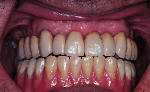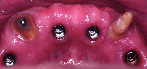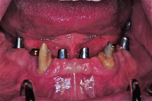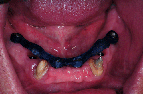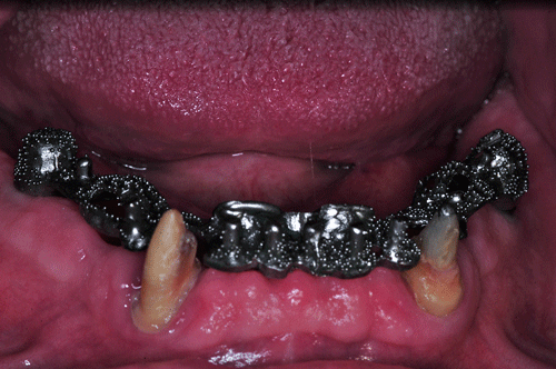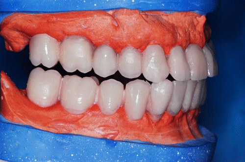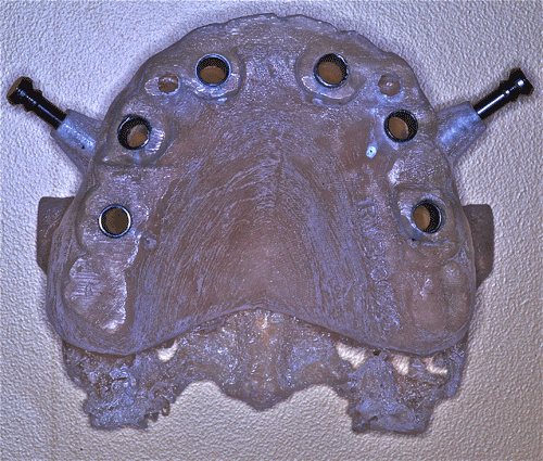 23/03/12 - 11:26 am Hola Dr.Emiliano: Son piezas cerámicas de stock. Efectivamente asienta sobre cuatro pilares con efecto telescópico sobre las cofias de la mesoestructura, y dos broches, Abajo no se hizo fija, por la necesidad de reestablecer la pérdida ósea centrípeta que presentaba el maxilar., mediante encía artificial, en cuyo caso, habiendo gran cantidad de enc´cia propia cubierta, yo no suelo atornillar ya que de hacerlo lo someto al enfermo a concurrir a la consulta cada vez que tenga que higienizarse, mientras que con una removible puede hacerlo solo. Atentamente Dr.Acuña Priano pedro luxen